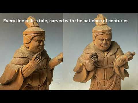 Handcrafted Wooden Statue of Komokuten - The Wide-Eyed Guardian